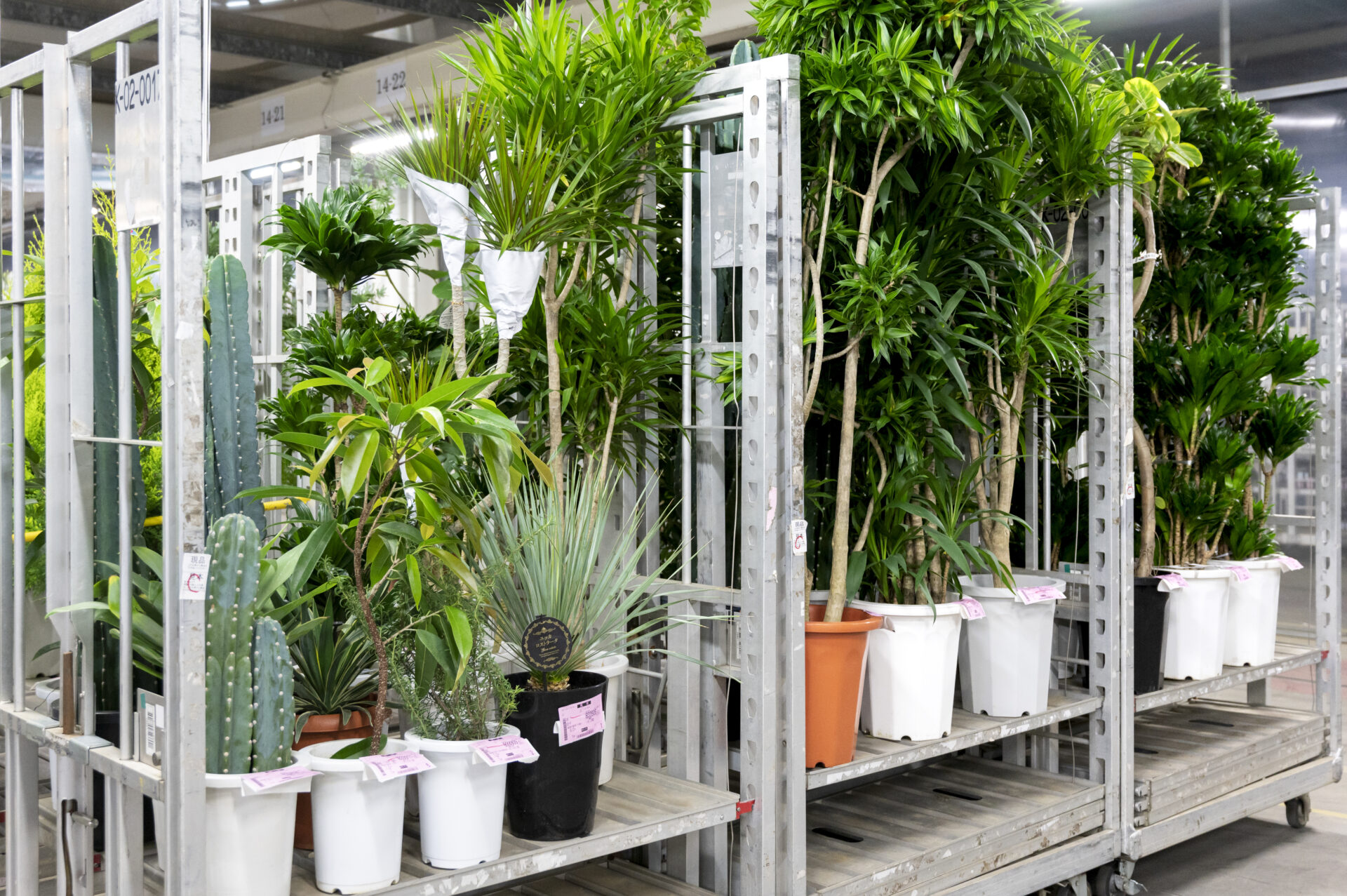 セリ場またはオンラインで参加でき、鉢物と切花を同日にセリで仕入れ可能です。落札した商品を分荷するなど、買参人の皆さまの時短と利便性を追求しています。