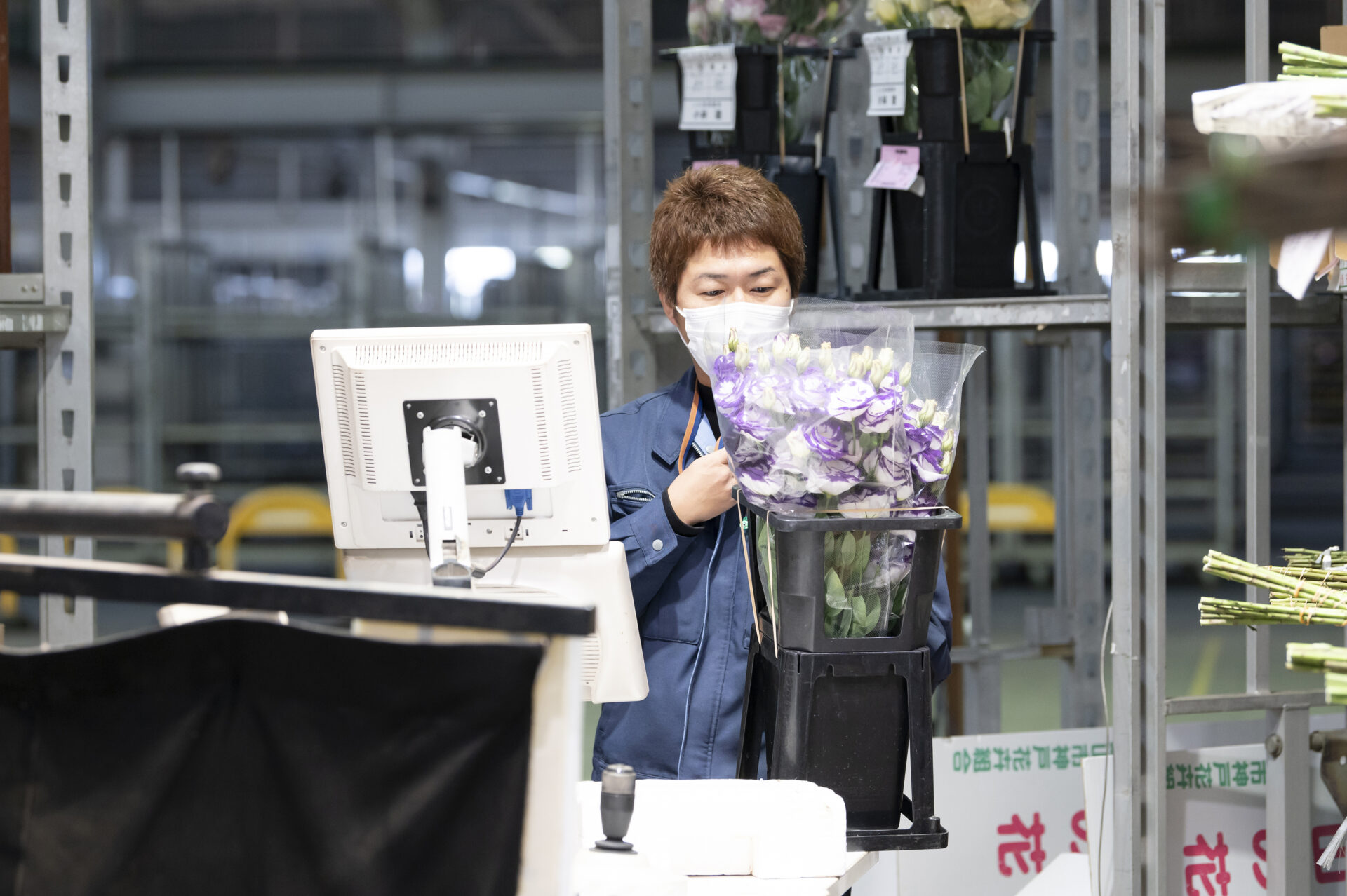 切花の生産者へ販売結果を伝え次の出荷予定をたてたり、入荷前に、情報をみながら買参人と連絡をとりながら販売しています。