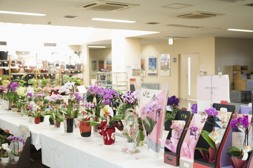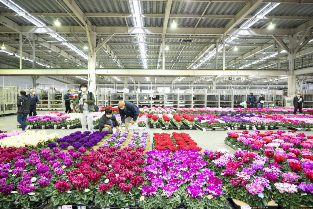 冬は、 シクラメンの部、 一般鉢花、観葉植物の部、 洋蘭の部の3部門で、「品質・技術性」や「商品性」を競い合います。