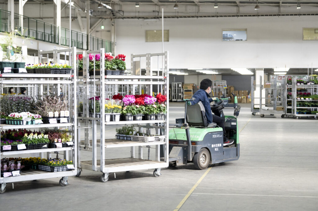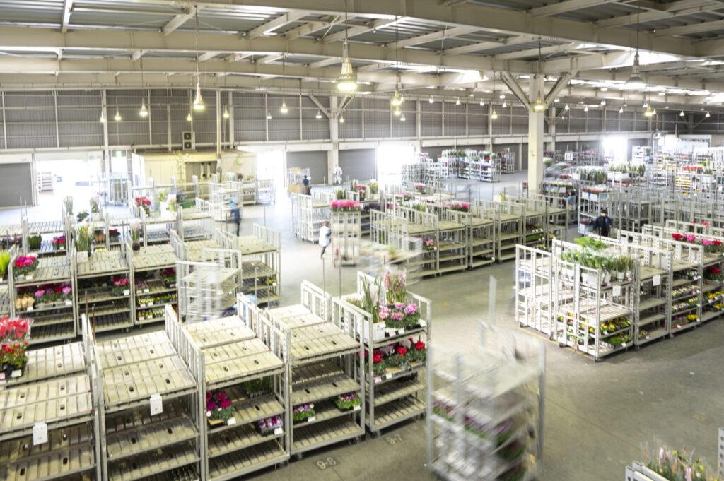 お客様がセリに参加しているのと同時に、仕分けされ台車にまとめていくので、セリ終了後、集まった商品と伝票を付け合わせをすることで、すぐにトラックへ積みこみができます。